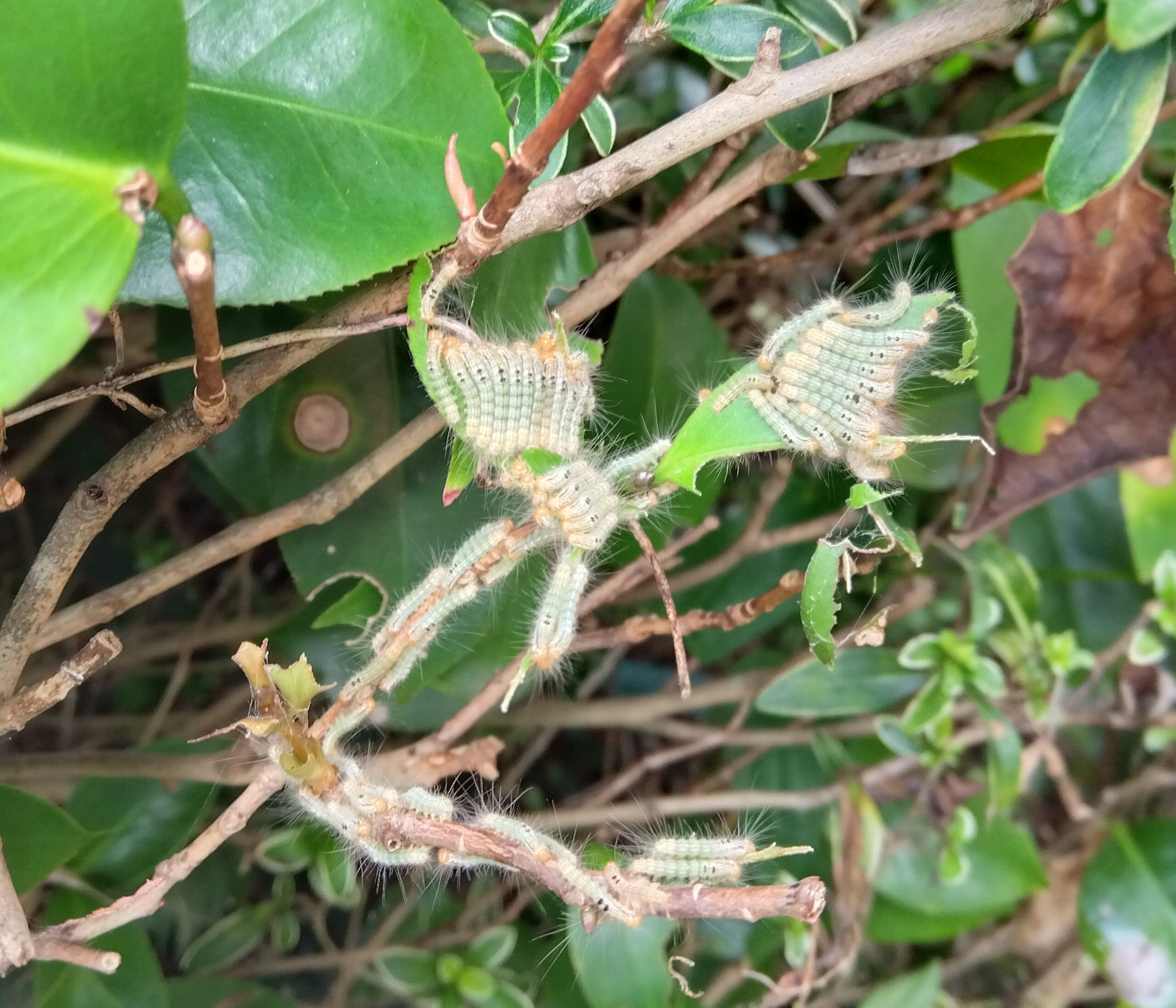 毛虫用の殺虫剤(スミチオン・BT剤など)で駆除しましょう。