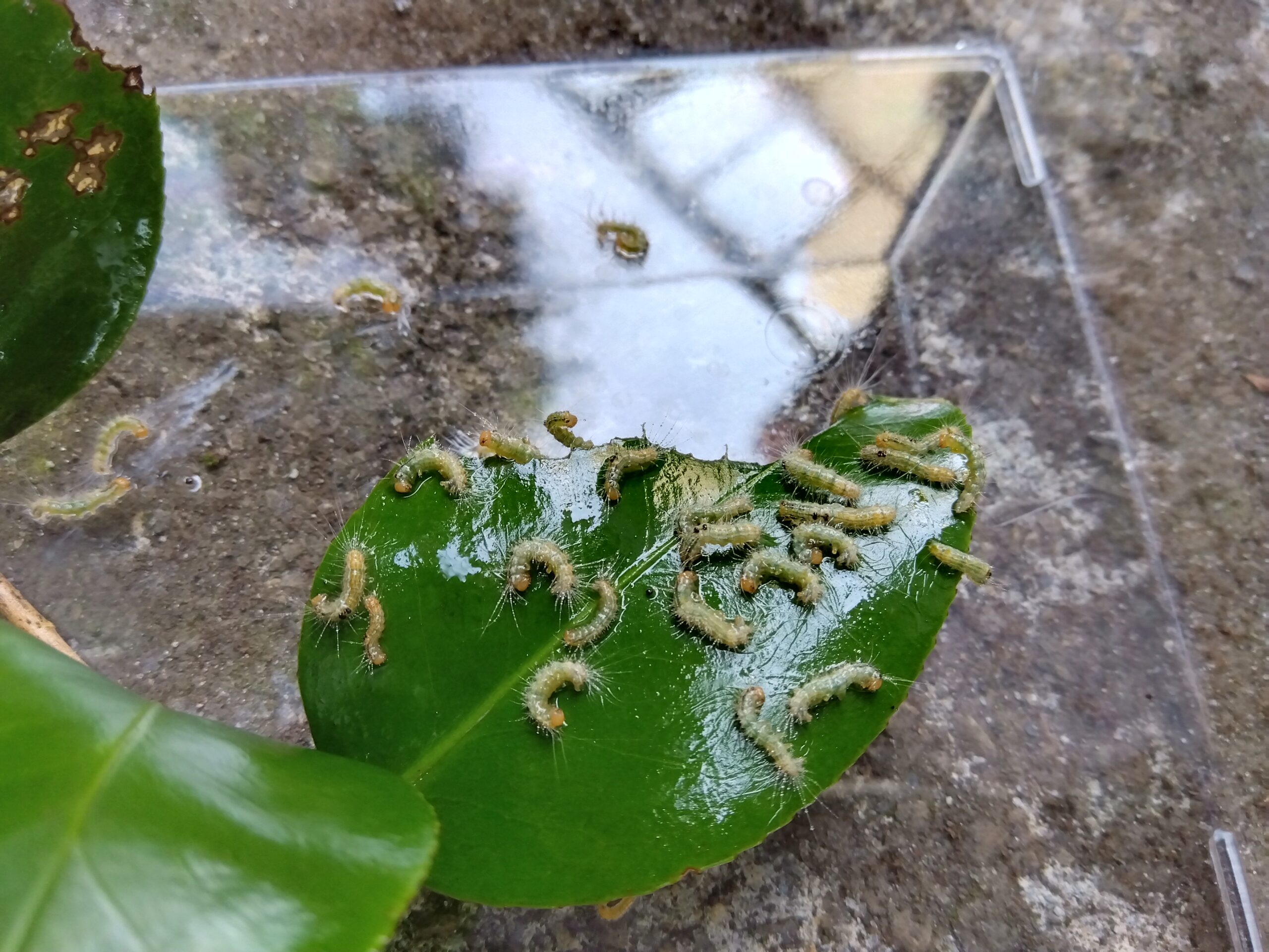 産卵:再びツバキ・サザンカの葉裏に卵を産みつけます。